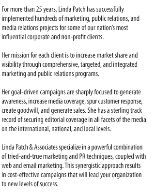 © 2026 Linda Patch & Associates • Home • About • How We Work • Services • Clients • Testimonials • Contact Us • Back to top